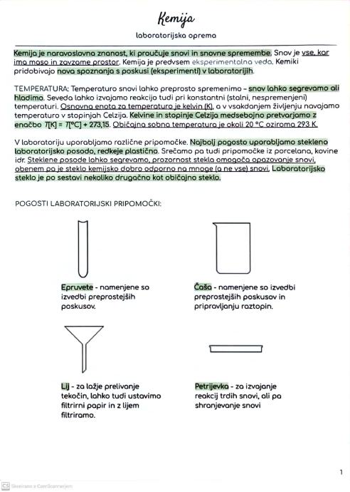 Zapiski so narejeni po učbeniku Snov in spremembe 1 (Andrej Smrdu), zunanjih virov, sprotne snovi od pouka in vsebujejo veliko slikovnega gradiva.