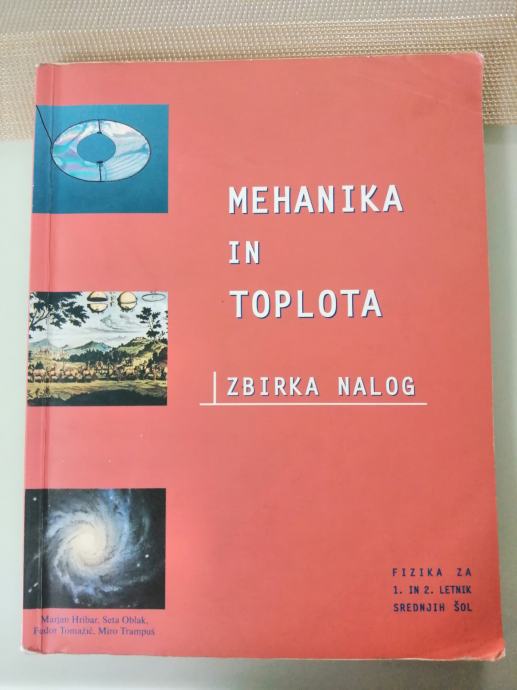 Prodam odlično ohranjeno zbirko nalog "MEHANIKA IN TOPLOTA" za fiziko v 1.in 2.letniku. Avtorji: Hribar, Oblak,Tomažič, Trampuš. Nič popisano. Zbirka je namenjena preverjanju znanja pred testi in za boljše ocene. Pošljem po pošti. Pišite: microscop2014@gmail.com ali 051/688 409