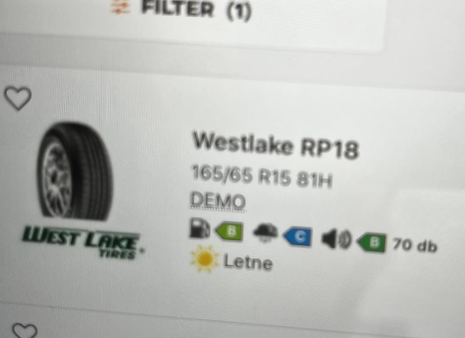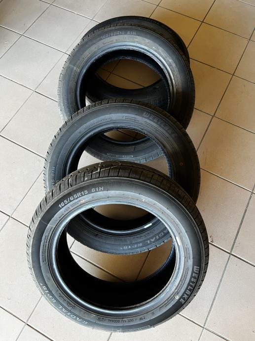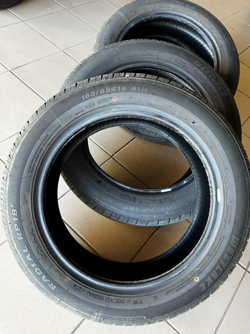 Pnevmatike Westlake Radial RR 18, dimenzija 165/65/15 letne gume. Dobil sem jih z nakupom novega avta in naslednji dan zamenjal. Gume so dejansko nove, prevoženih samo 100 km!! 4 kom.