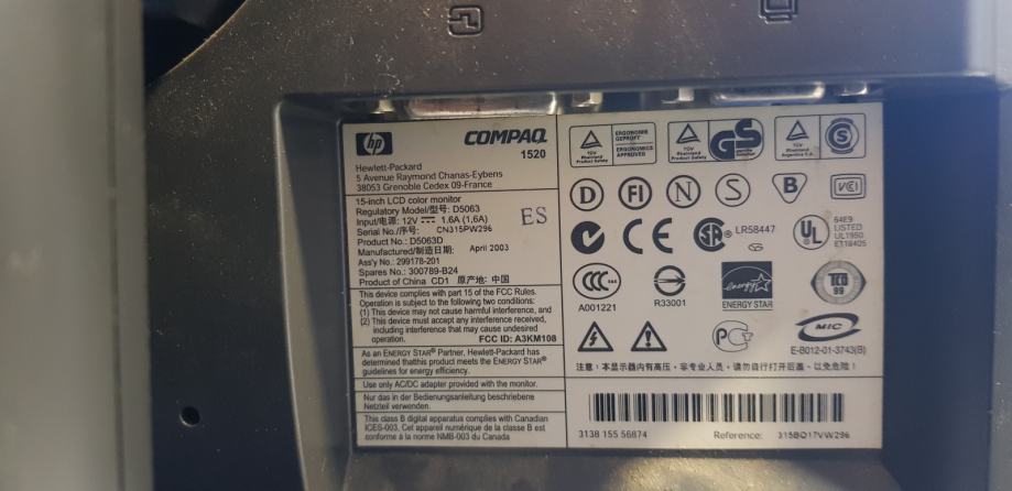Prodam starejši HP-jev monitor Compaq 15" model D5063.