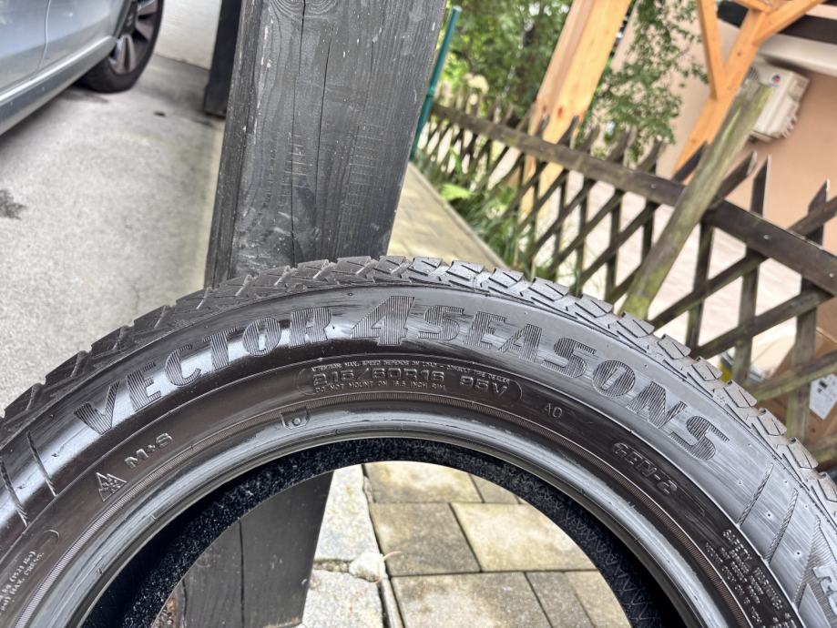 Prodam celoletne gume znamke Goodyear Vector 4 Seasons,dimenzije 215/60-16,dot2821,profila 5-6mm,2 komada,nepoškodovane.Cena je za komplet 2 komadov.