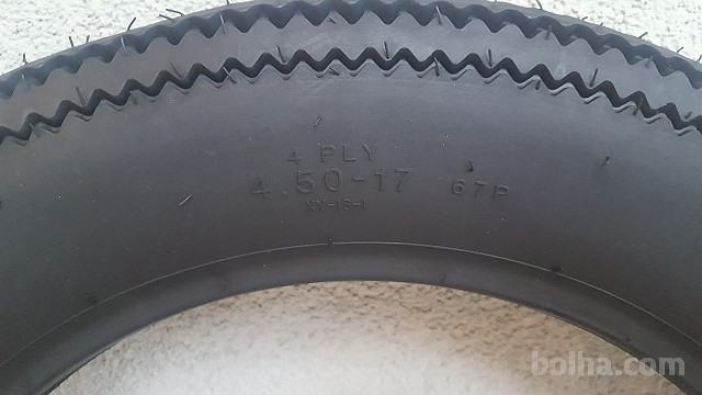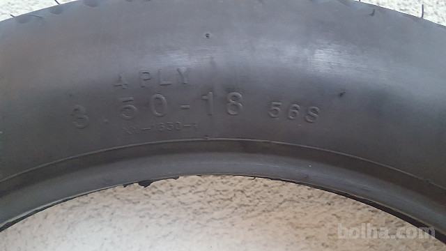 Prodam komplet novih pnevmatik za cafe racer ali bobber Moonstar tyre (replica designa Firestone Champion Deluxe)dim 4.50/17 col (99 eur) in 3.50/18 col (89 eur). Hitrostna oznaka S56 (224 kg in 180 km/h). Popolnoma nove, letnik 2018, za BMW K 100 oziroma katerikoli drug motor. V ceni so vštete tudi zračnice. Za obe skupaj cena 160 eur.