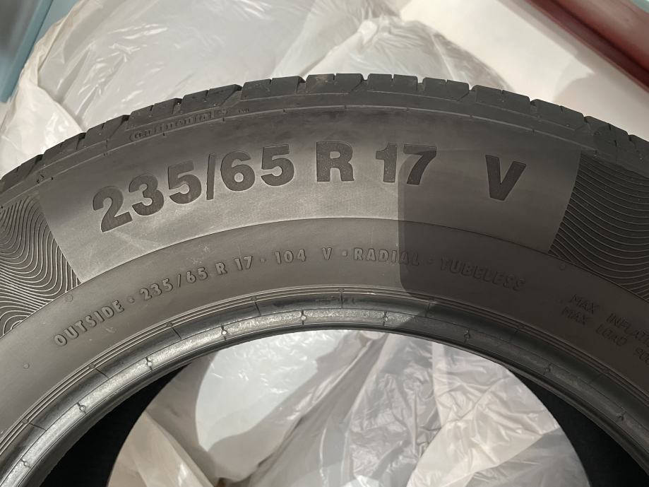 Štiri letne pnevmatike Continental 235/65/17, zelo malo rabljene, letnik 2020, skladiscene pri vulkanizerju, prodam. Pnevmatike so bile v uporabi 3 mesece in so kot nove.