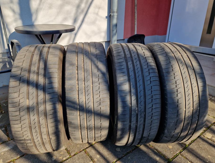 Prodam letne pnevmatike Continental PremiumContact 6, dimenzije 245/45 R19, DOT4623, globina profila je 5 mm. Ena pnevmatika je bila predrta, vendar strokovno popravljena pri priznanem vulkanizerju ter vožena še celo sezono in je brezhibna.