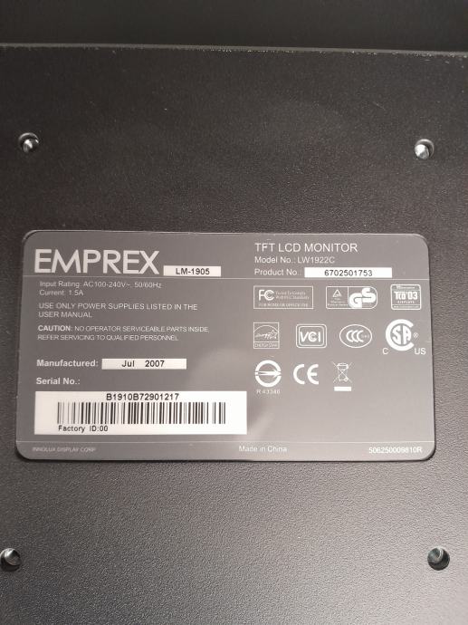 Ugodno prodam rabljen 19" monitor. V ceno sta vključena VGA kabel innapajalni kabel.