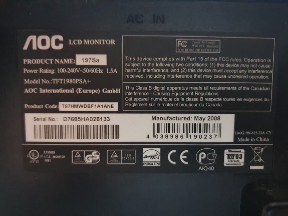 Prodam brezhiben monitor AOC 19 inch ,poleg je napajalni in vga kabel