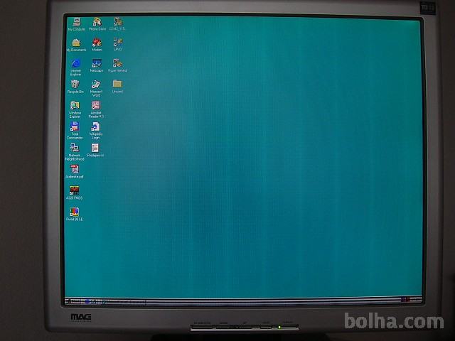 Monitor pri svetlejši sliki dela vodoravne črte. Pri temnejši sliki ali manjšem nastavljenem kontrastu je stanje boljše. Na slikah je kontrast nastavljen 50, na eni pa 21. Če je svetel tekst na temnem ozadju je slika skoraj normalna. Po vsej verjetnosti je napaka v panelu. Prodam tudi po delih.