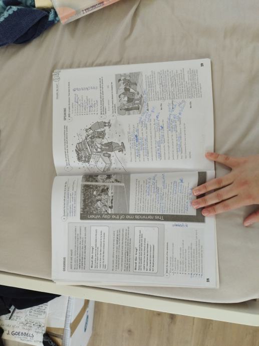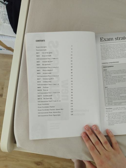 Rabljen delovni zvezek za angleščino za gimnazije. Rešen približno 40%, ostalo nepopisano.