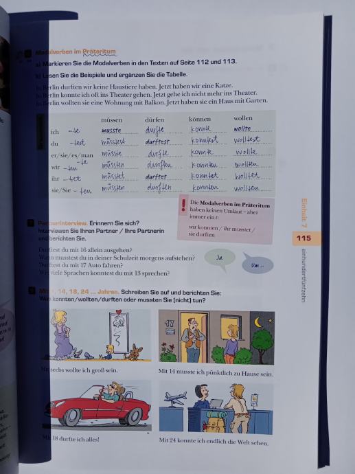 Prodam učbenik za nemščino z nalogami za gimnazije in srednje šole Studio D na ravni A2. Uporablja se v različnih letnikih glede na raven znanja. Je zelo lepo ohranjen, rešenih je le nekaj nalog, podčrtanih nekaj besed, prva notranja stran je bila prepognjena, drugače pa znotraj izgleda kot nov. Učbenik je ovit. Priložen je CD s posnetki besedil iz učbenika.