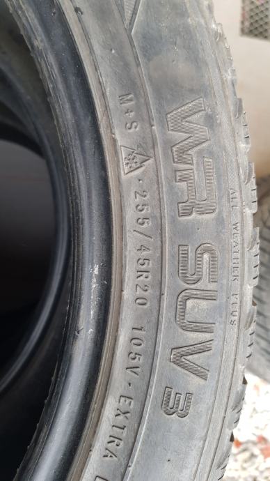Enakomerno obrabljene (5mm), nepoškodovane zimske pnevmatike Nokian, SUV 255/45/R20, DOT 2015 prodam. Cena za vse štiri je 40€.