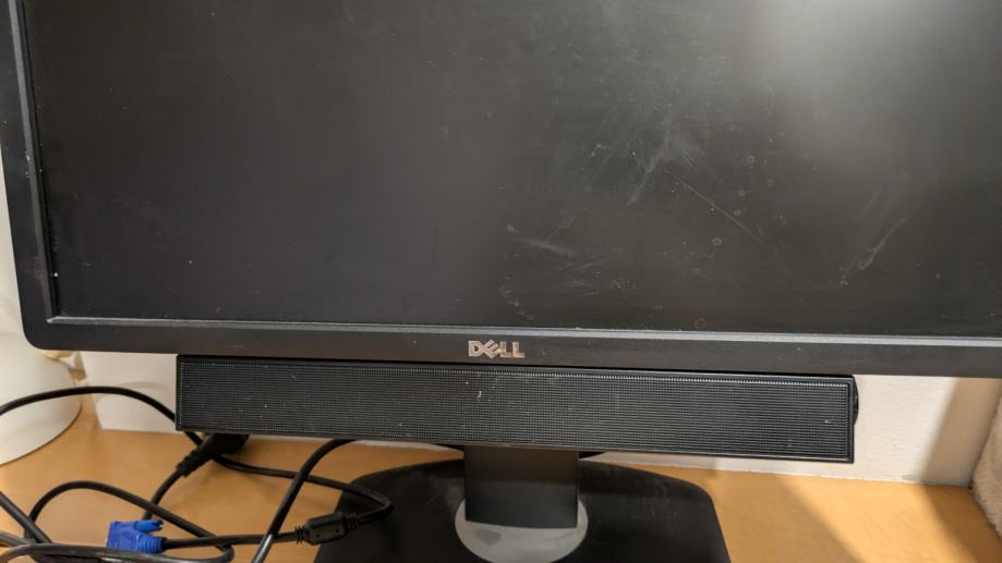 Prodam dobro ohranjen in delujoč 22 inchen Dell P2231T monitor z originalnim Soundbarom. Možnost nastavljanja naklona, višine in kota pogleda. Zraven dam VGA in napajalni kabel. Ima možnost različnih video priključkov (kot razvidno na sliki). Ima tudi dva USB vhoda za dodatne zvočnike.