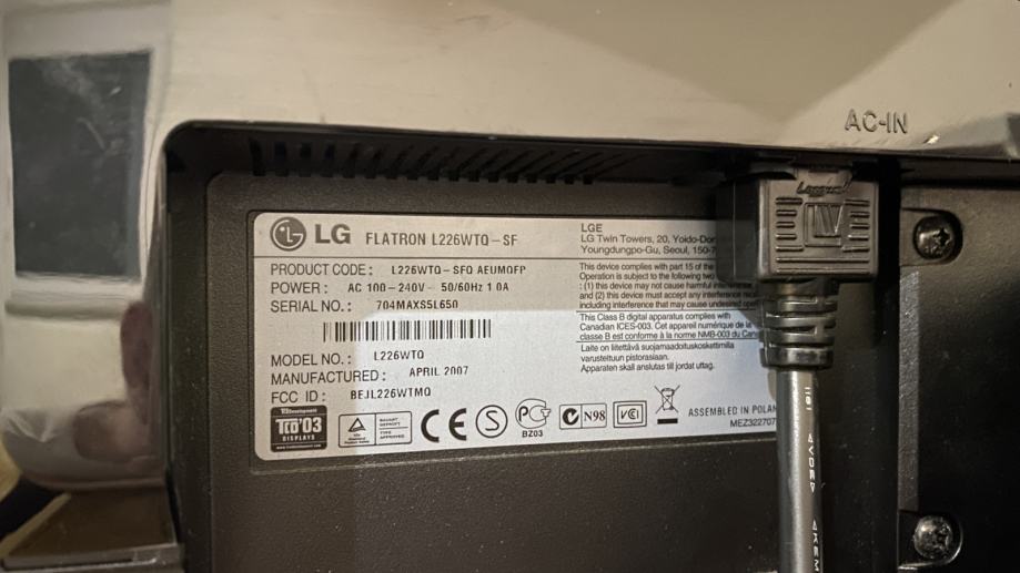 Prodam Monitor LCD LG L226WTQ-SF, 22 colski.