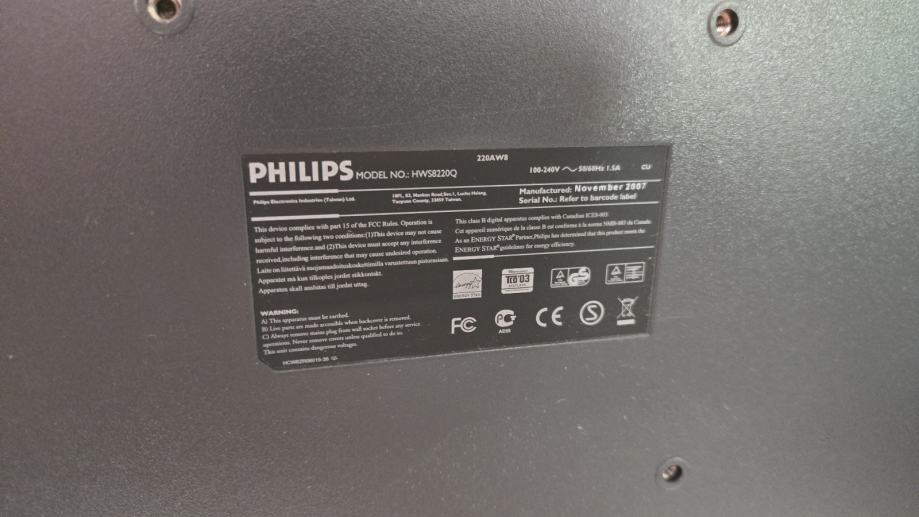 Lepo ohranjen 22" Philips monitor, 1680 x 1050 p, VGA in DVI priključek. Brez mrtvih pikslov. Prevzem in test v LJ.