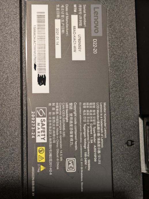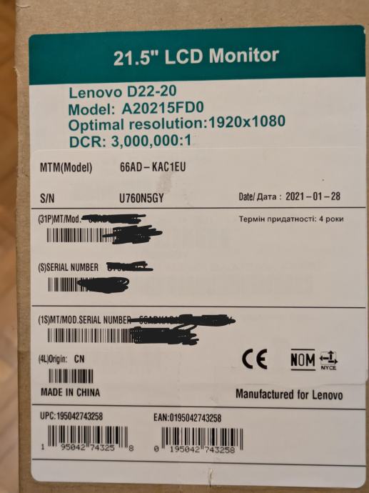 Prodam Lenovo D22-20 monitor LED LCD monitor. Monitor je izpraven. Frekvenca osvezevanja 75 hz. Primeren tudi za igranje igric. HDMI in VGA prikljucek. HDMI in elektricni kabel prilozena.