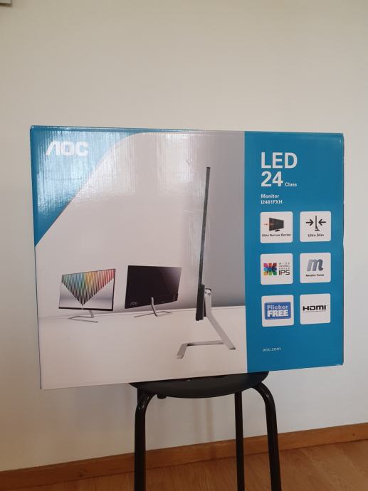 Prodam monitor AOC I2481FXH. Monitor je kot nov. Kupila sem ga julija 2021 od iLINKS z namenom študija in glavni razlog prodaje je zaključek študija. Monitor ima še vedno gor svojo zaščitno folijo in niti ene praske. Zraven dobite originalno škatlo, priključek za elektriko in HDMI kabel. Priložim račun s katerim imate garancijo do julija 2024.
