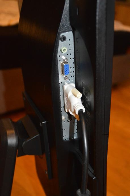 Poglejte fotke, od kablov prilagam za priklop in DVI kabel.