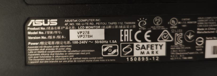 Prodam 27” LCD LED monitor proizvajalca ASUS model VP278H. Tehnični podatki so: