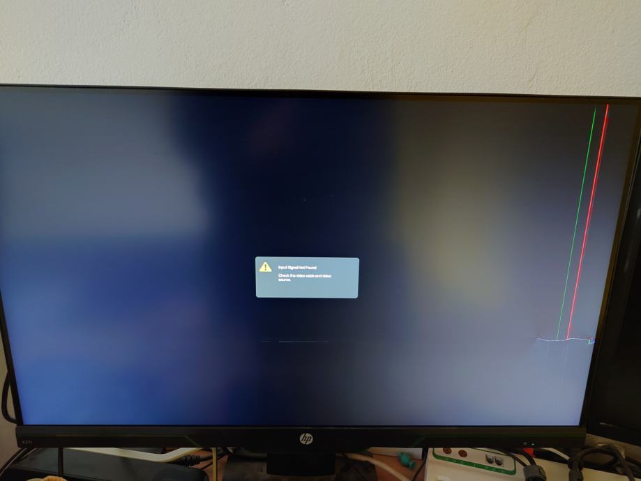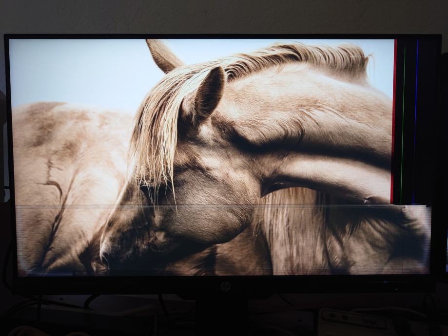 Prodam okvarjen monitor. Panel ima poškodbo in prikazuje sliko s črtami v desnem delu in spodnjem delu ekrana.