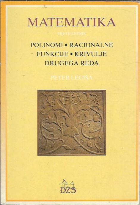Naslov Matematika : tretji letnik. Polinomi, racionalne funkcije, krivulje drugega reda / [[besedilo in] fotografije] Peter Legiša ; [tehnične ilustracije Darko Simeršek]