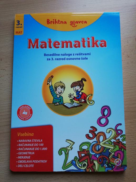 Brihtna glavca. Matematika 3. Besedilne naloge z rešitvami za 3. razred osnovne šole. Par strani rešenih. Cena: 3,5 € (nov 7,95 €)
