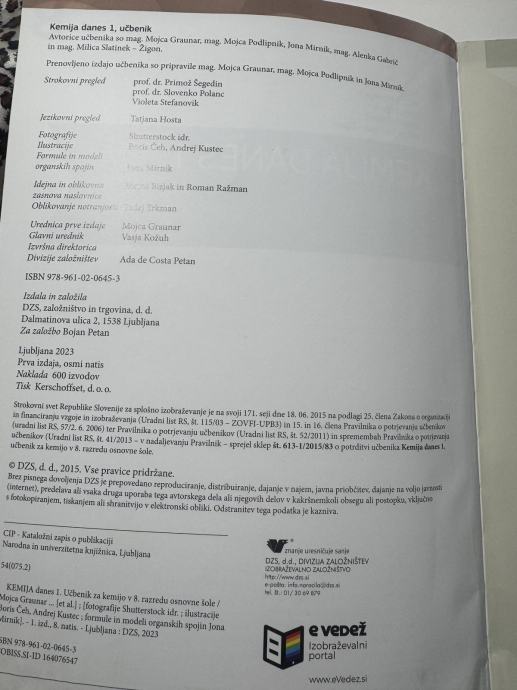 Prodam zelo dobro ohranjen učbenik Kemija danes 1 za 8. razred osnovne šole.