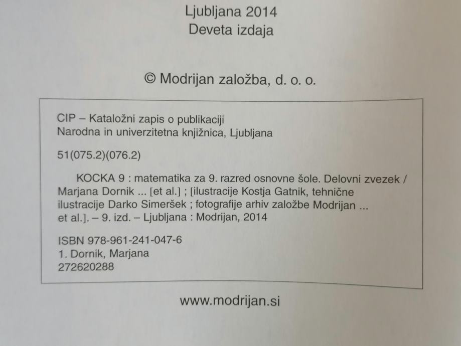 Učbeniki za 9.razred osnovnih šol Kocka 9, Spoznavam...