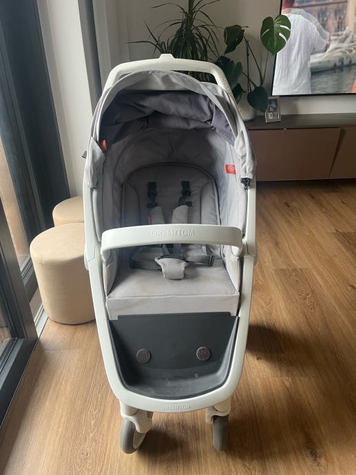 Prodam zelo kvaliteten Greentom otroški voziček. Je lepo ohranjen! V uporabi je bil minimalno! Na sliki prikazano kako dobro se zloži. Prodajam ker ga ne potrebujemo več!