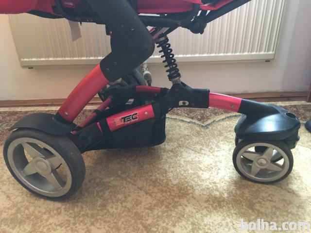 Prodam otroški voziček, lepo ohranjen v belo rdeči kombinaciji. Sestoji iz košare za dojenčka in športni del, spodaj košara za prtljago.Voziček ima nožno zavoro na zadnjih in blokado za vožnjo naravnost na prednjem kolesu. Seveda se tudi zloži za lažji prevoz.