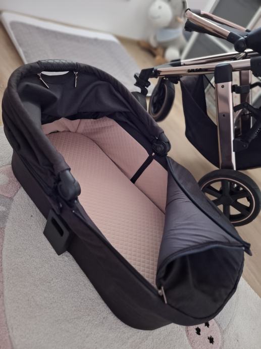 Prodam otroški voziček (barva črna/rose gold) z vsem kar spada zraven (vse na slikah).