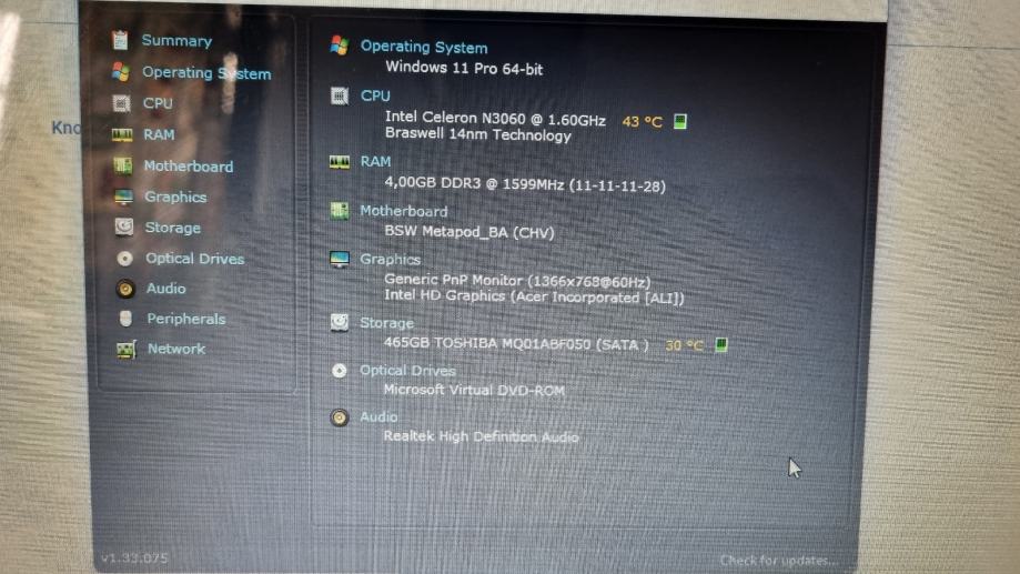 Prenosnik je namenjen vsakodnevni uporabi, glasbi, Office, brskanju po internetu.