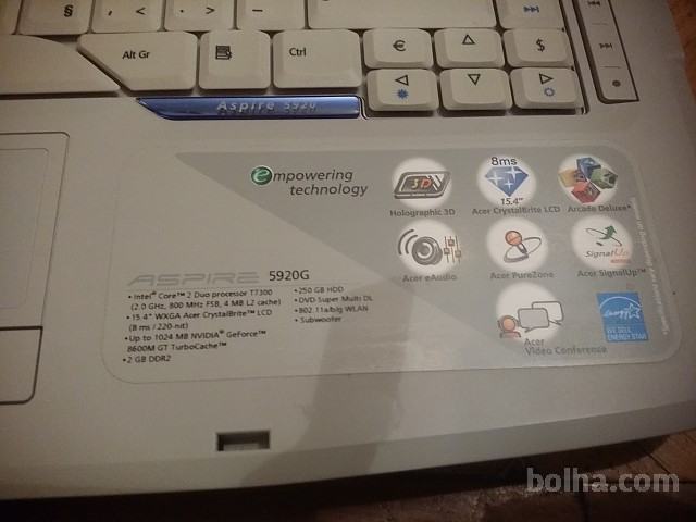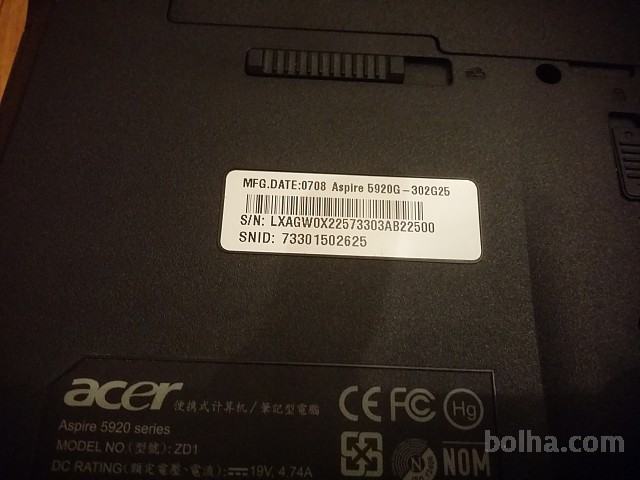 Prodam Prenosni računalnik Acer Aspire 5920G za dele v okvari