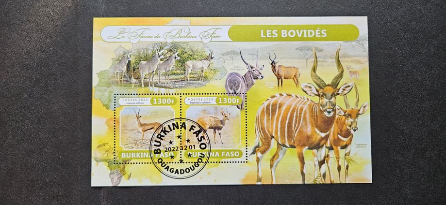 antilope, gazele - Burkina Faso 2022 - blok 2 znamk, žigosan (Rafl01)