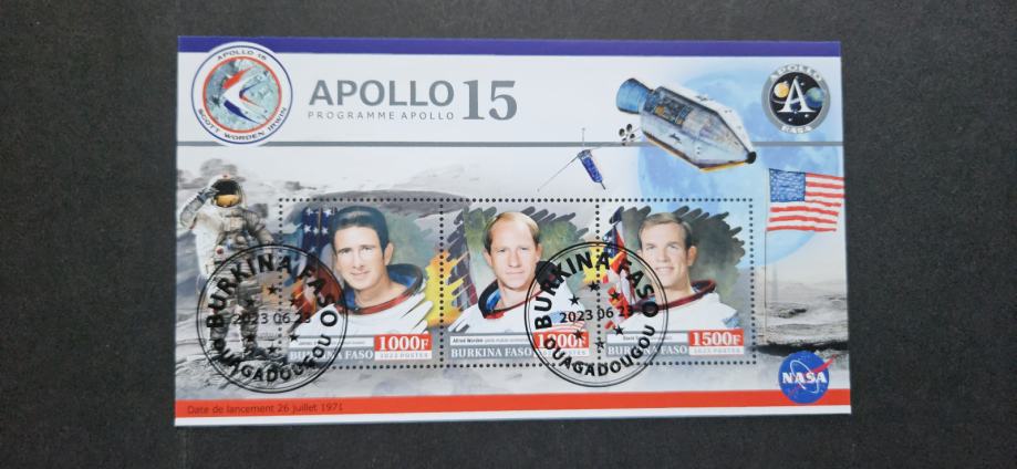 Apollo 15, vesolje - Burkina Faso 2023 -blok 3 znamk, žigosan (Rafl01)