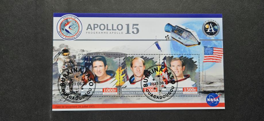 Apollo 15, vesolje - Burkina Faso 2023 -blok 3 znamk, žigosan (Rafl01)
