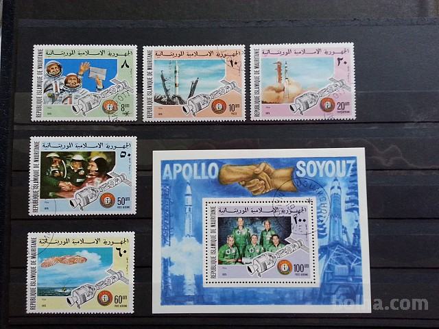 Kompletna serija 5 znamk in pripadajoči blok, žigosane.