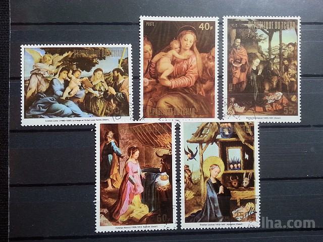 Božič, umetnost - Čad 1973 - Mi 685/689 in B 62 -serija, blok (Rafl01)