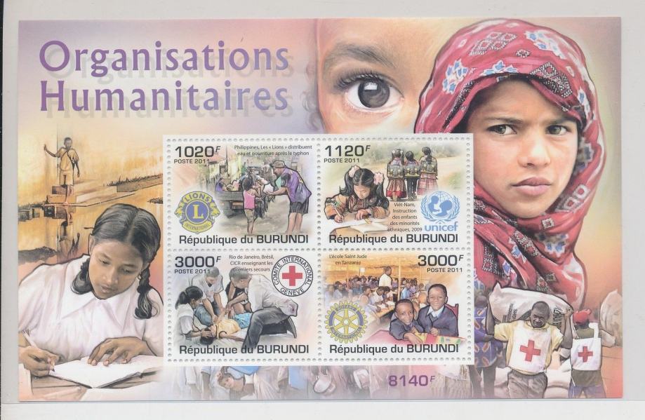 BURUNDI 2011 UNICEF LIONS ROTARY RDEČI ** Mi 2230/33 (B183) blok (77)