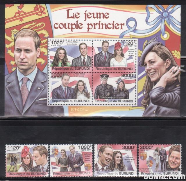 BURUNDI 2011 KRALJEVI PAR WILLIAM KATE ** Mi 2282/85+B190 MP+BL (60)