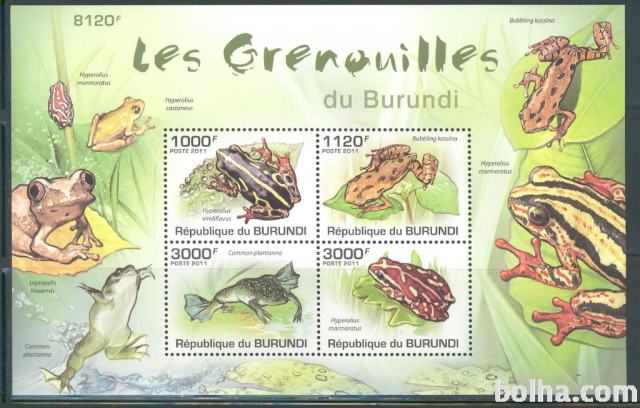 BURUNDI 2011 ŽABE DVOŽIVKE ŽIVALI ** Mi 2066/2069 (B162) ** blok (93)