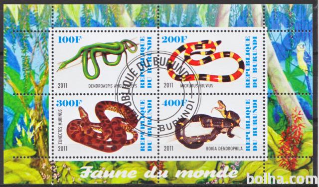 BURUNDI 2011 ŽIVALI FAVNA PLAZILCI KAČE ** mala pola (žigosana) (92)