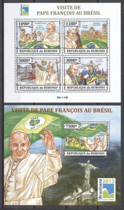 BURUNDI 2013 PAPEŽ FRANČIŠEK ** Mi 3303/3306+BL 385 ** MP+blok (69)