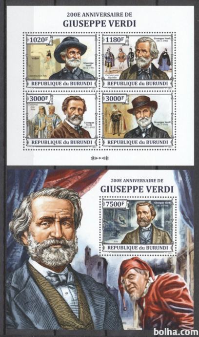 BURUNDI 2013 GLASBA SKLADATELJI VERDI ** Mi 3258/61+B376 MP+blok (14)