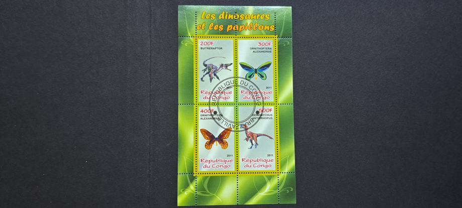 dinozavri & metulji (II) - Kongo 2011 - blok 4 znamk, žigosan (Rafl01)