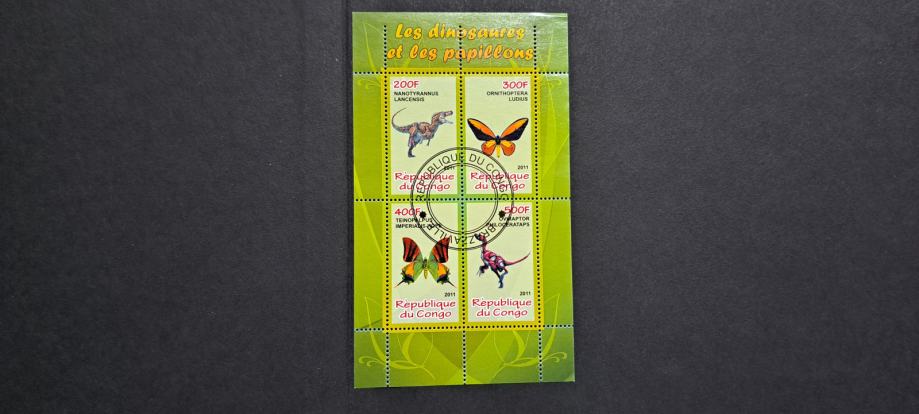 dinozavri & metulji (III) - Kongo 2011 -blok 4 znamk, žigosan (Rafl01)