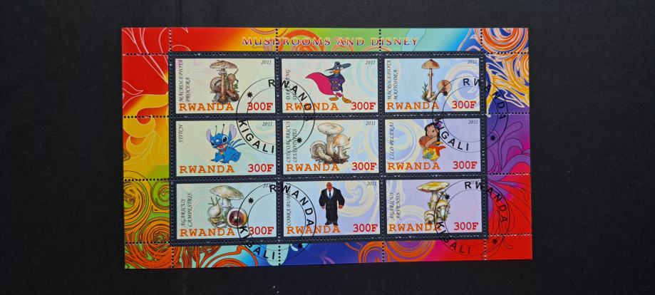 Disney & gobe (III) - Ruanda 2011 - blok 9 znamk, žigosan (Rafl01)