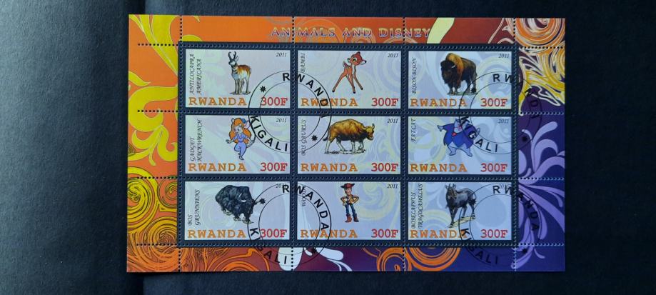 Disney & živali (I) - Ruanda 2011 - blok 9 znamk, žigosan (Rafl01)
