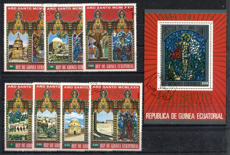 EKVAT. GVINEJA 1975 VELIKA NOČ ** Mi 527/533+BL 157 ** serija+blok (2)