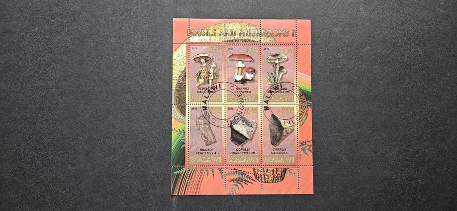 fosili & gobe (II) - Malawi 2010 - blok 6 znamk, žigosan (Rafl01)