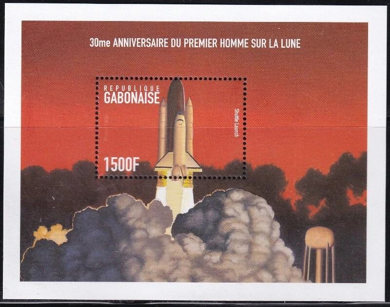GABON 1999 VESOLJE PRISTANEK NA LUNI ** Mi 1462 (BL 97) ** blok (23)