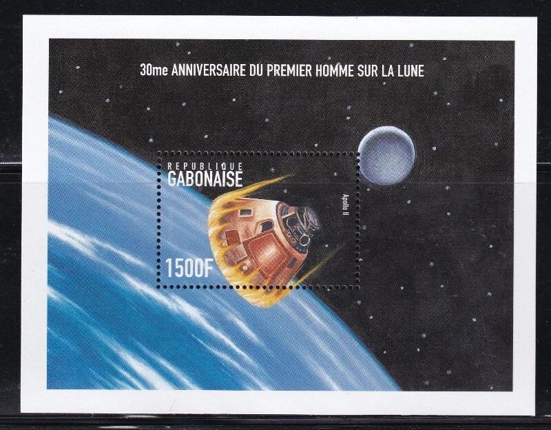 GABON 1999 VESOLJE PRISTANEK NA LUNI ** Mi 1463 (BL 98) ** blok (23)